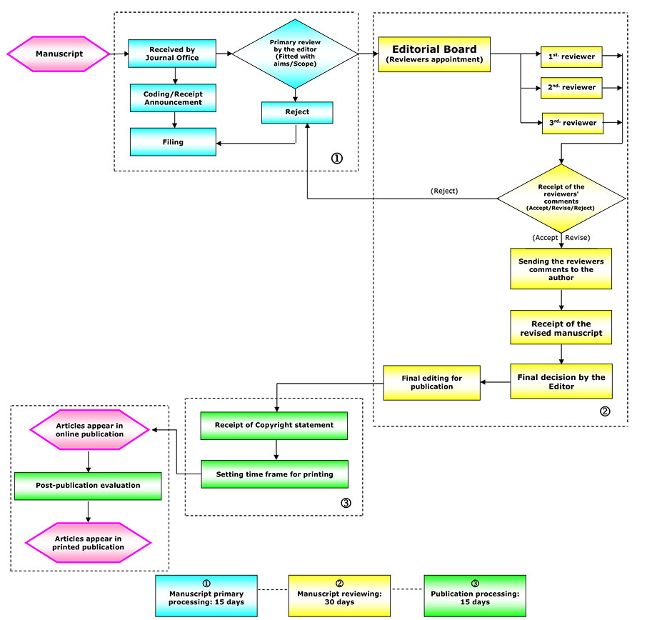 The processes of reviewing, acceptance and publication of articles in the Journal of Positive Psychology Research is as follows: